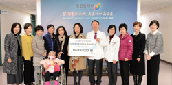 ±¹Á¦¼Ò·ÓƼ¹Ì½ºÆ® Çѳ²Å¬·´À¸·ÎºÎÅÍ ¼Ò¾Æ¾Ï ȯ¾ÆÀÇ Ä¡·áºñ Áö¿øÀ» À§ÇÑ 1600¸¸¿øÀÇ ±âºÎ±ÝÀ» Àü´Þ¹Þ¾Ò´Ù. 2011³âºÎÅÍ ±¹¸³¾Ï¼¾ÅÍ ¼Ò¾Æ¾Ï ȯ¿ìµéÀ» À§ÇØ ¹ÙÀÚȸ