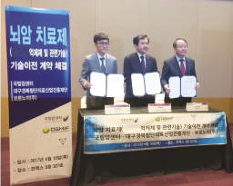 À̰Çö ±¹¸³¾Ï¼¾ÅÍ ¿øÀåÀº ¡°¾Ï Áٱ⼼Æ÷¸¦ Ç¥ÀûÀ¸·Î ÇÏ´Â Ä¡·áÁ¦´Â ±âÁ¸ Ç×¾ÏÄ¡·áÀÇ ¹®Á¦Á¡À» ÇØ°áÇÏ°í ¾Ï Ä¡·áÀÇ ÆÐ·¯´ÙÀÓÀ» ¹Ù²Ù´Â ȹ±âÀûÀÎ Ä¡·áÁ¦°¡ µÉ °Í¡±À̶ó¸ç ¡°À̹ø Çù¾àÀ» °è±â·Î Á¶¼ÓÇÑ ½ÃÀÏ ³» ÀÓ»ó½ÃÇèÀ» ¸¶Ä¡°í »ó¿ëÈ¿¡ ¼º°øÇØ ³Ä¡¼º ¾Ï ȯÀڵ鿡°Ô Èñ¸ÁÀ» ÁÙ °Í¡±À̶ó°í ¸»Çß´Ù. ÀÌÀçÅ ´ë±¸°æºÏ÷´ÜÀÇ·á»ê¾÷ÁøÈïÀç´Ü ÀÌ»çÀåÀº ¡°¾ÏÁٱ⼼Æ÷ Ç¥ÀûÄ¡·áÁ¦ °³¹ßÀº ¾ÏÀÇ Àç¹ß°ú ÀüÀ̸¦ ¸·À» ¼ö ÀÖ´Â Çõ½ÅÀû Ä¡·á¹ýÀÌ´Ù. ¾ÕÀ¸·Îµµ ´ë±¸¿¡¼ ´ëÇѹα¹ ½Å¾à°³¹ßÀÇ »õ·Î¿î ¿ª»ç¸¦ ½á³ª°¥ °ÍÀÌ´Ù¡±°í ¹àÇû´Ù. ±èÇöÅ º¸·Î³ëÀÌ ´ëÇ¥´Â ¡°±¹¸³¾Ï¼¾ÅÍ¿Í ½Å¾à¼¾ÅͰ¡ Çù¾÷ÇÑ ÀÌ ±â¼úÀ» Åä´ë·Î ±Û·Î¹ú ÀÓ»ó°³¹ß ¹× ´Ù±¹Àû Á¦¾à»ç ±â¼úÀÌÀüÀ» À§ÇØ ÀÚ»ç ¿ª·®À» ÃÖ´ëÇÑ ÁýÁßÇÒ °èȹ¡±À̶ó°í ¹àÇû´Ù.