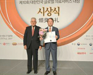 ±¹¸³¾Ï¼¾ÅÍ À̰Çö ¿øÀåÀÌ 4¿ù 27ÀÏ ¼¿ï ÇöóÀÚÈ£ÅÚ¿¡¼ °³ÃÖµÈ ¡®¸ÞµðÄà ¾Æ½Ã¾Æ 2017, Á¦10ȸ ´ëÇѹα¹ ±Û·Î¹ú ÀǷἺñ½º ´ë»ó¡¯¿¡¼ º¸°Çº¹ÁöºÎÀå°ü»óÀ» ¼ö»óÇß´Ù.