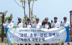 ¾ÏÅðÄ¡¹é¸¸ÀÎŬ·´°ú ÇÔ²²ÇÏ´Â ¡¸ÀÚÀü°Å ±¹Åä¼ø·Ê : µ¿ÇØ¾È 1Â÷¡¹ Çà»ç°¡ Áö³ 5¿ù 11ÀÏ(¸ñ)ºÎÅÍ 13ÀÏ(Åä)±îÁö ¿·È´Ù. À̹ø ÀÚÀü°Å Á¾ÁÖ¿¡´Â ¹ÚÀç°© ±¹¸³¾Ï¼¾ ÃÊ´ë¿øÀå, ÀÌÁø¼ö îñ¿øÀå, ±è¼±Å ÇϳªÀºÇà ÁöÁ¡Àå, ±è¿ëÈñ ½ÅÇÑÀºÇà ÁöÁ¡Àå µî ¾ÏÅðÄ¡¹é¸¸ÀÎŬ·´ ȸ¿ø 8¸íÀÌ Âü¼®Çß´Ù. Á¾ÁÖ ±¸°£Àº ÀÓ¿øÇ׺ÎÅÍ ÅëÀÏÀü¸Á´ë±îÁö ¾à 223kmÀÌ´Ù. À̹ø Çà»ç´Â ¿îµ¿ÀÇ »ýȰȷΠ¾Ï°ú °ü·ÃµÈ À§Çè¿äÀÎÀ» °¨¼Ò½ÃÅ´À¸·Î½á ¾ÏÀ» ¿¹¹æÇÏ°í °Ç°ÇÑ È¯°æ°ú °Ç°ÇÑ »îÀ» ¿µÀ§ÇÒ ¼ö ÀÖ´Â ¿©°ÇÀ» Á¶¼ºÇϰíÀÚ °³ÃֵǾú´Ù. |