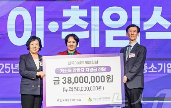 기부금은 지난해 여경협이 개최한 ‘2024 전국 여성경제인 자선 골프대회’를 통해 마련됐다. 여경협은 2022년부터 현재까지 국립암센터에 5800만 원을 저소득 암 환자 치료 지원금으로 전달했다.