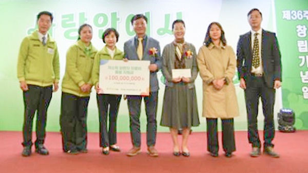 ㈜태건비에프는 지난 20일(일) 본사 신관 1층에서 제45회 장애인의 날과 제36주년 창립기념일 행사를 개최하고, 저소득 암환자를 위한 지원금 1억원을 국립암센터발전기금에 전달했다.