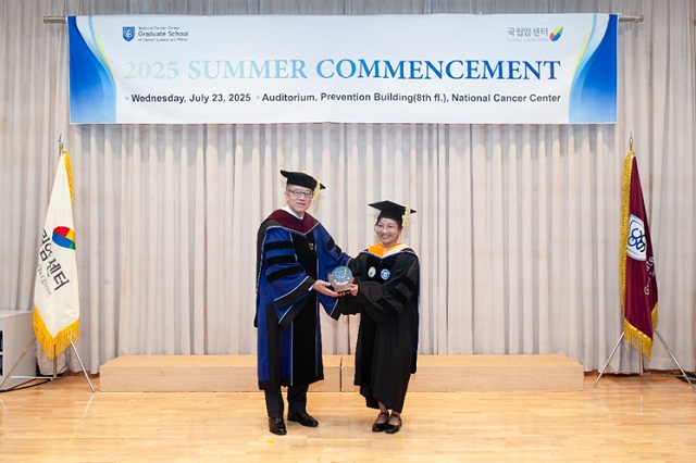 국립암센터국제암대학원대학교(총장 양한광)는 2025년 7월 23일(수) 국립암센터 국가암검진동 8층 대강의실에서 ‘2025년 후기 학위수여식’을 갖고, 보건학·이학 석사 6명(한국 3명, 방글라데시 1명, 베트남 1명, 몽골 1명)과 보건학·이학 박사 3명(베트남 2명, 중국 1명) 총 9명의 졸업생을 배출했다.