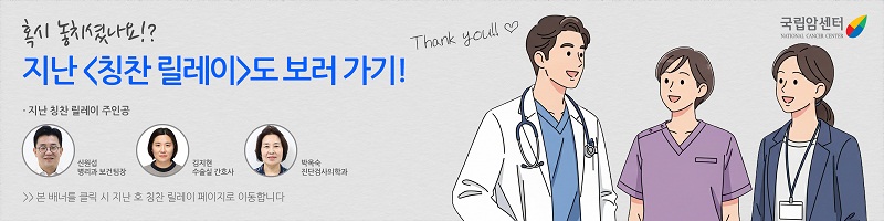 국립암센터는 환자 중심의 진료와 연구가 조화를 이루는 곳이라, 근무기간동안 그 일원으로 일할 수 있다는 것 자체가 큰 보람이었습니다. 특히 서로를 존중하고 돕는 따뜻한 동료들이 있어, 어려운 상황에서도 함께 성장할 수 있었습니다. 이런 협력적인 분위기 덕분에 매일이 배움의 연속이었습니다. 다시 한 번 감사의 인사 드립니다.