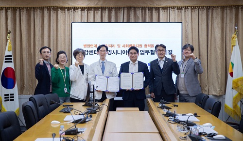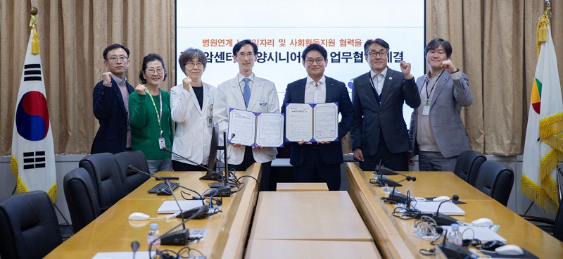 국립암센터는 지난해 10월 27일(월), 국가암예방검진동 8층 세미나실에서 ‘국립암센터-고양시니어클럽 노인일자리 및 사회활동지원 업무 협약식’을 개최했다. 이번 협약은 국립암센터가 지역사회와 협력을 통해 병원 연계형 노인일자리 모델을 구축하고 고령층의 사회활동을 지원하기 위해 마련됐다. 양 기관은 2026년 1월부터 12월까지 시범사업을 운영하며, 병원 내 안내 및 동행 서비스 등 방문객 접점 업무에 역량있는 시니어 인력을 투입할 예정이다. 이를 통해 환자와 방문객의 편의 및 서비스 품질을 높이고 고령층에게는 안정적인 일자리와 사회활동의 기회를 제공한다.