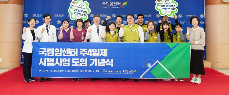국립암센터는 주4일제 시범사업 도입을 기념하는 행사를 2025년 12월 5일 개최했다. 이날 행사에는 양한광 원장, 최정미 사무국장, 안승희 간호본부장 및 시범사업 참여 간호사 등 국립암센터 관계자와 최희선 전국보건의료산업노동조합 위원장, 한성일 국립암센터 지부장 등 노동조합 간부가 참석했다.
