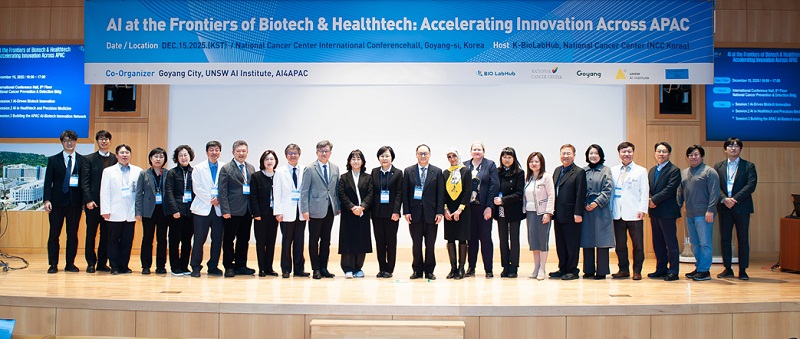 국립암센터는 지난해 12월 15일(월) 국가암예방검진동 8층 국제회의장에서 K-바이오랩허브사업추진단(단장 한인석)과 공동으로 AI 기반 바이오·헬스 혁신 포럼을 개최했다. 이번 포럼은 아시아태평양(APAC)지역의 바이오·헬스 분야에서 인공지능 기술을 활용한 혁신 사례와 글로벌 협력 전략을 논의하기 위해 마련됐으며 고양특례시, UNSW AI Institute, AI4APAC가 공동으로 주관했다. 행사에는 국내외 바이오·헬스, AI, 의료데이터 분야 전문가와 연구자들이 온·오프라인으로 참여해, AI 기반 신약개발, 암 연구 등 최신 연구 동향과 실제 적용 사례를 공유했다.