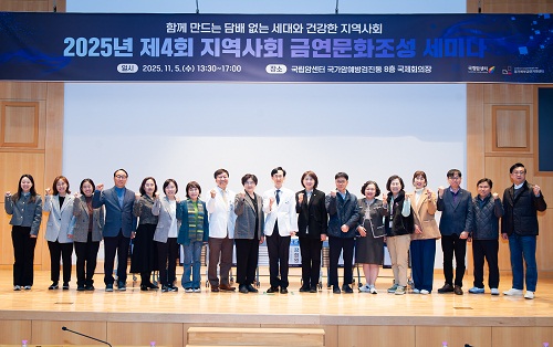 국립암센터는 지난해 11월 5일(수) 국가암예방검진동 8층 국제회의장에서 ‘제4회 지역사회 금연문화조성 세미나’를 개최했다. 이번 세미나는 국립암센터 경기북부금연지원센터가 주관했으며, ‘함께 만드는 담배 없는 세대와 건강한 지역사회’를 주제로 지역사회 금연문화 확산에 기여하기 위해 마련됐다.