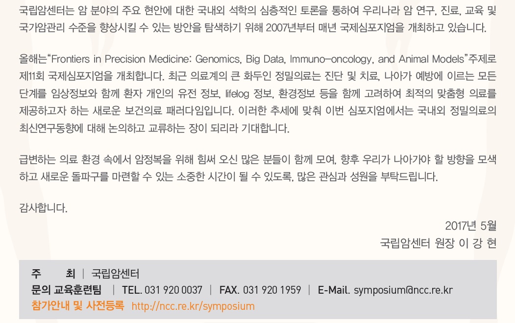 제11회 국립암센터 국제심포지엄 - 모시는 글