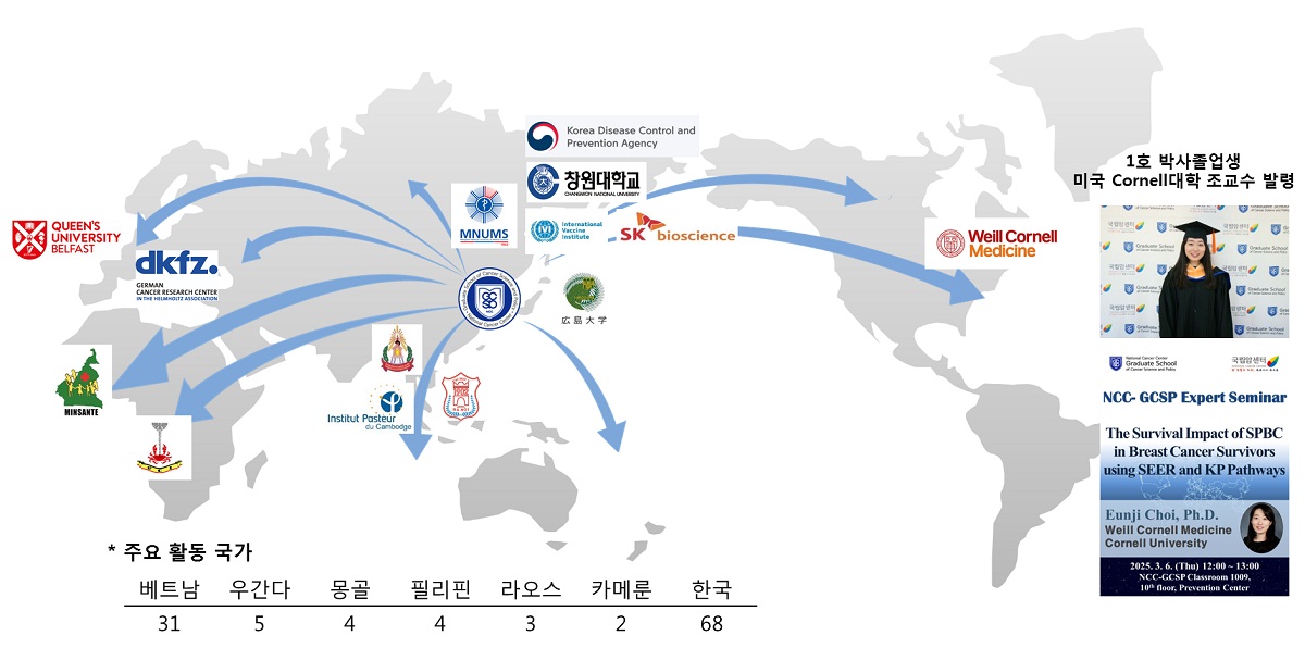 이러한 변화 속에서 국제적 위상도 높아지고 있다. 현재 NCC-GCSP에는 많은 유학생들이 재학 중이며, 전체 졸업생의 45%가 외국인이다. 이들은 졸업 후 자국의 보건정책에 핵심 인력으로 투입되고 있다. 실제로 각국의 정부기관, 보건의료기관, 연구소 및 대학 등에 취업하여 글로벌 암관리 및 연구활동에 매진하고 있다.