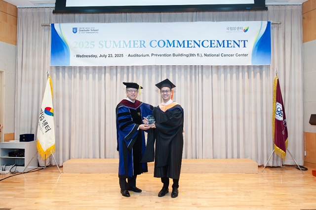 국립암센터국제암대학원대학교(총장 양한광)는 2025년 7월 23일(수) 국립암센터 국가암검진동 8층 대강의실에서 ‘2025년 후기 학위수여식’을 갖고, 보건학·이학 석사 6명(한국 3명, 방글라데시 1명, 베트남 1명, 몽골 1명)과 보건학·이학 박사 3명(베트남 2명, 중국 1명) 총 9명의 졸업생을 배출했다.