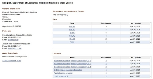 이번 연구는 국내 유전체 데이터의 국제적 표준화와 더불어, 실제 암 진료 현장에서 아시아인 환자를 위한 정확한 유전변이 해석의 중요한 기반이 될 전망이다. 이러한 연구 성과는 임상 현장에서 유전성 암 진단의 정확도를 높이고, 환자 맞춤형 치료법 개발로 이어져 한국인에게 최적화된 정밀의료 실현에 한 걸음 더 가까워지는 계기가 될 것으로 기대된다. 이번 ClinVar 제출은 국립암센터 공익적 암 연구사업 (NCC-2410821-2)의 지원을 받아 수행되었다.